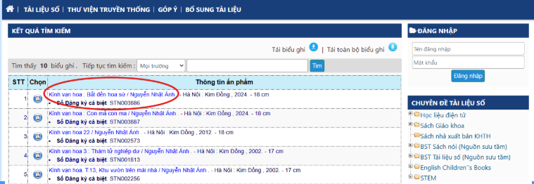 Bước 3: Click chọn vào nhan đề sách muốn mượn