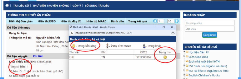 Tình trạng sách hiện đang trên kệ của Thư viện