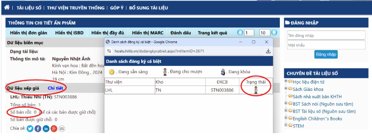 Tình trạng sách KHÔNG còn trong kho của Thư viện do đã được mượn